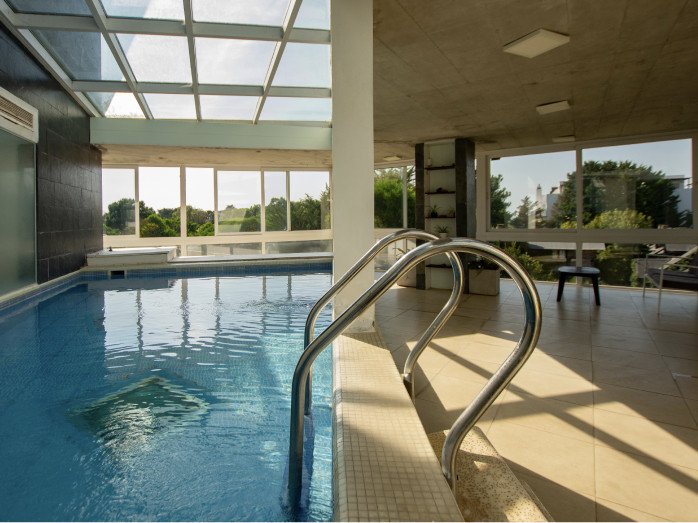 Nuestra piscina climatzada se encuentra en el segundo piso, tene una hermosa vista.